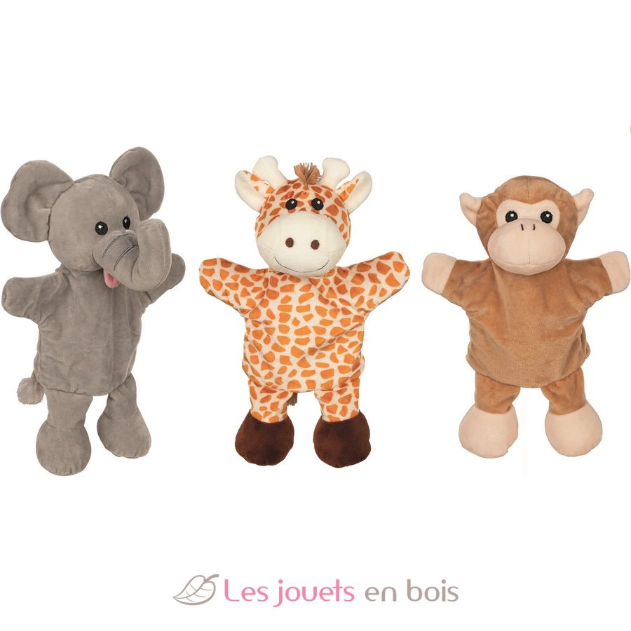 Marionnettes à main girafe, singe et éléphant de la marque Goki. Référence 50960.