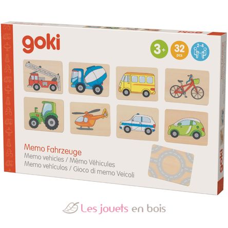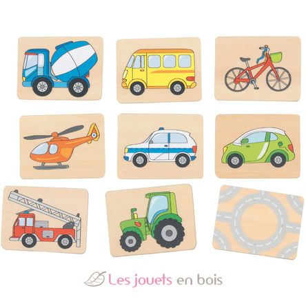 Mémo véhicules, un jeu éducatif en bois de la marque Goki.