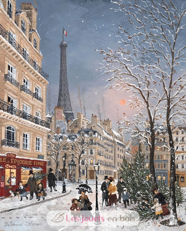Fabienne Delacroix est une peintre figurative française qui vit et travaille à Paris. Dans cette scène parisienne nommée Mi-décembre, l'artiste capte la lumière si particulière de l'hiver dans un beau dégradé de rose et de bleu gris. La découpe de ce puzzle fait ressortir la tour Eiffel qui surplombe les quartiers de la capitale !