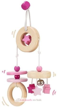 Un concert de cliquetis retentissant ! Un grand anneau, une clochette, des disques qui cliquettent… et que l'on peut en plus tirer dans tous les sens ! Le mini portique - Etoile rose est facile à attacher en toute sécurité à l'anse du siège auto, cosi etc... Amusement garanti à la maison et en promenade.