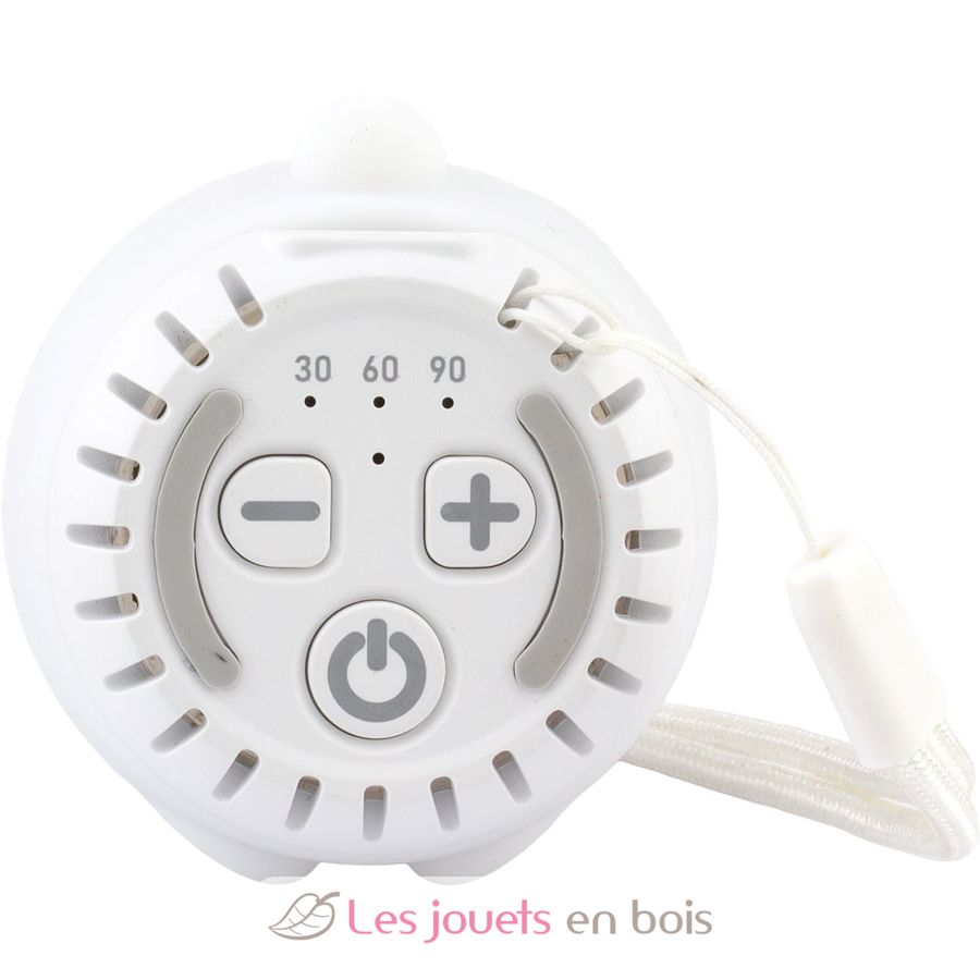 Cette veilleuse diffuse un bruit blanc apaisant qui favorise l’endormissement en douceur et aide à un sommeil plus profond.