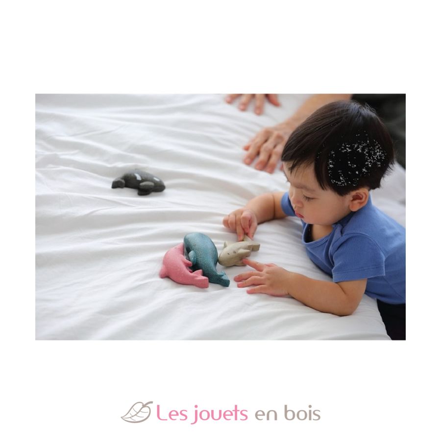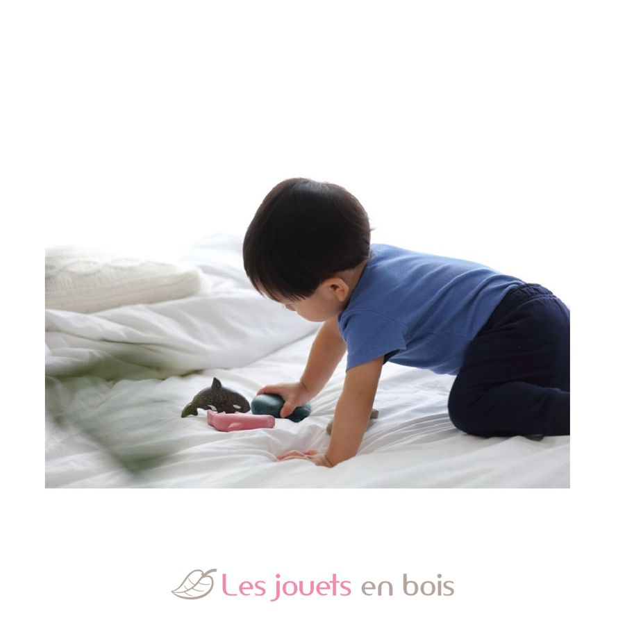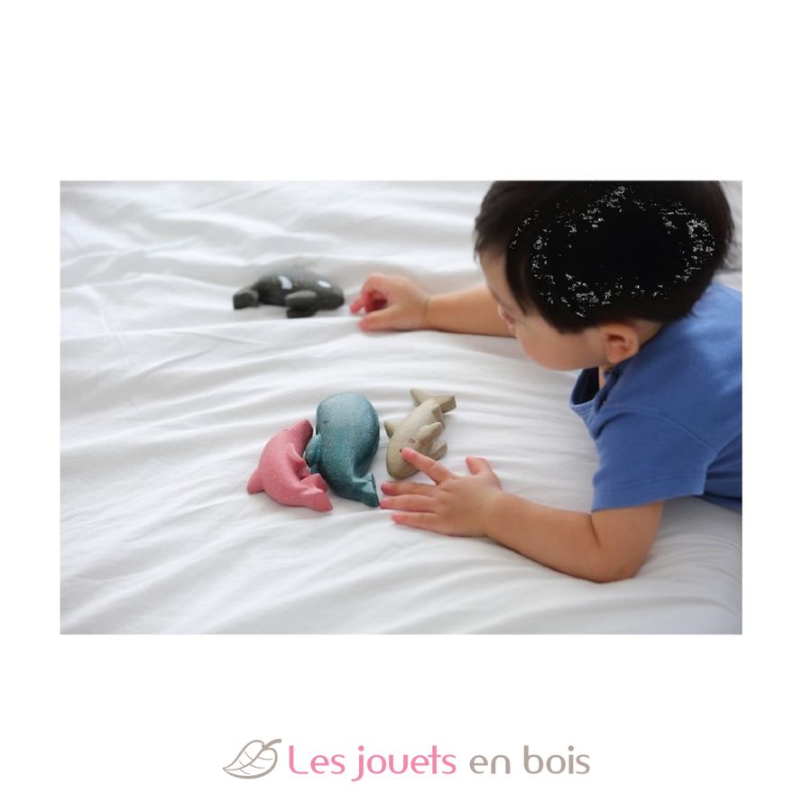 Voici un puzzle premier âge en bois parfaitement adapté aux petites mains. Les enfants pourront facilement retirer et replacer ces 3 mammifères marins: dauphin, baleine, orque pour composer ce joli puzzle. Un jeu d'encastrement fabriqué en bois d'hévéa récyclé, la marque de fabrique de Plantoys.