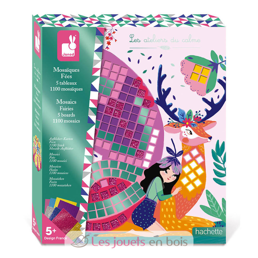 Découvrez le kit créatif Mosaïques Fées de la collection Les ateliers du calme de chez Janod, une activité créative de mosaïque pour les enfants à partir de 5 ans.