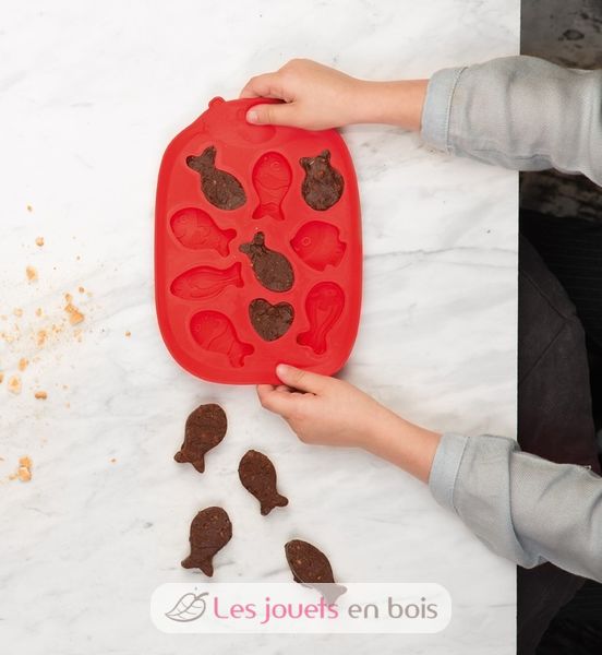 Remplis la bouche de César d’eau, un petit tour dans le congélo et notre ours gourmand pourra savourer 10 petits poissons glacés ! Ce moule en silicone convient également pour faire de délicieuses bouchées en forme de poissons.