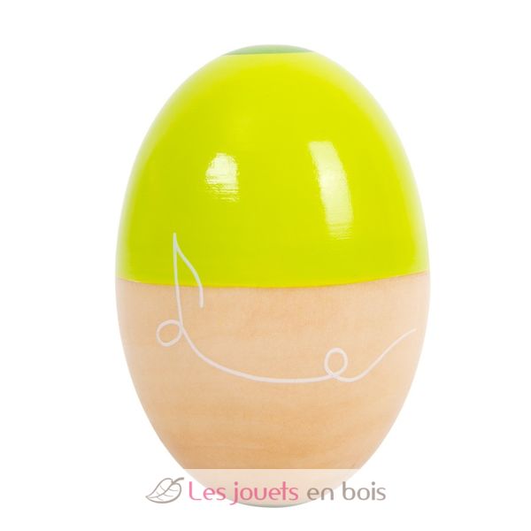 Les oeufs de belle forme sont particulièrement faciles à saisir pour les mains d'enfant. Ces oeufs musicaux séduisent aussi visuellement avec leur combinaison de bois naturel et de couleurs contrastées modernes.