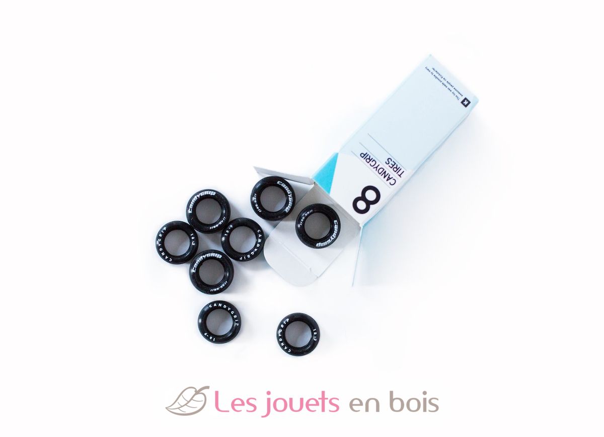 Un pneu crevé ? Pas de panique, le pack de 8 pneus est là pour vous sortir de la galère! Lot de 8 pneus en silicone adaptés à tous types de modèles de la marque Candylab, réf A08T. Diamètre pneu : 2,4 cm.