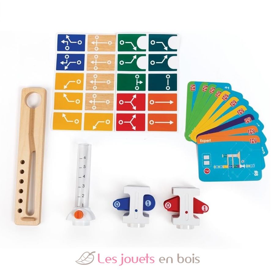 - Pour ajouter un peu de défi aux circuits de billes de votre enfant, 10 cartes défi avec un large éventail de niveaux de difficulté sont incluse. Ces défis favorisent la résolution de problèmes, tout en laissant libre cours à l'imagination.