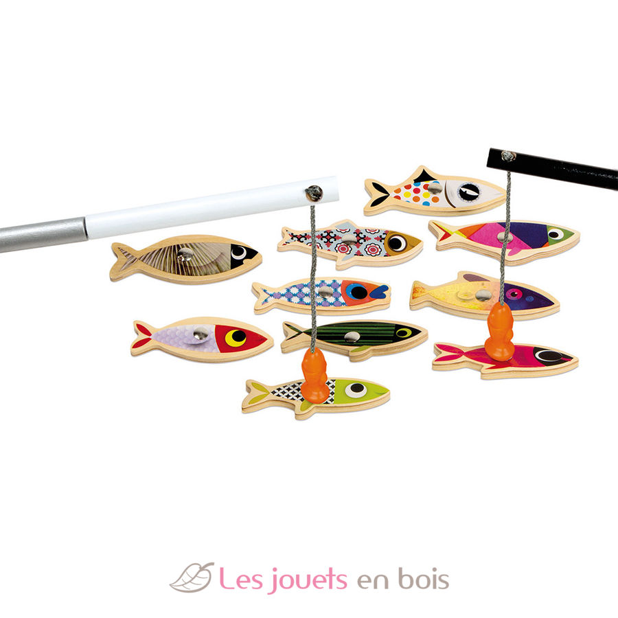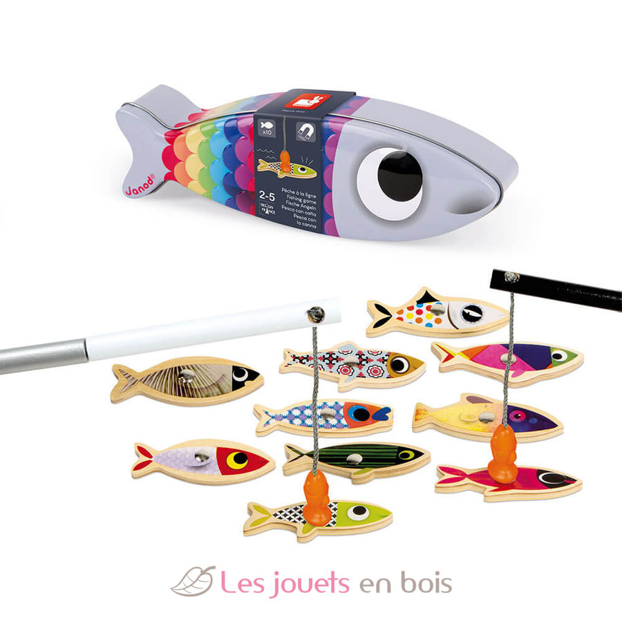 Un jeu de pêche à la ligne en bois magnétique pour les apprentis pêcheurs à partir de 2 ans. Idéal pour se lancer des défis seul ou jouer à plusieurs.