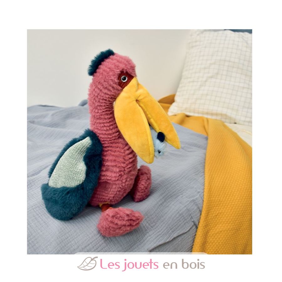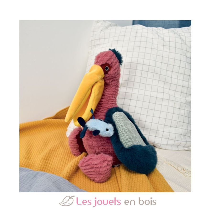 Dans cet univers fascinant fait de diversité, de couleurs et de créatures extraordinaires , cette délicieuse peluche pélican toujours accompagnée de son petit poisson prêt à être gentiment dégusté, sera toujours au rendez-vous des câlins ! Combiné de matières texturées, alvéolées, irisées texturées et de poils extra doux, ce jouet en peluche offre une expérience tactile riche promettant d'éveiller la curiosité sensorielle des enfants. Il pourra accompagner petits et grands matelots dans l'éveil des sens, le jeu et l'imagination. Il prendra aisément place dans la déco de la chambre et ce, dès la naissance.
