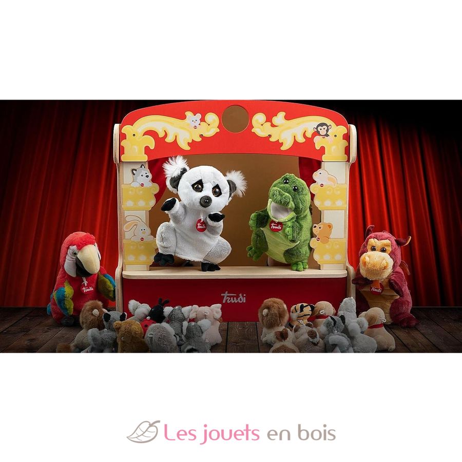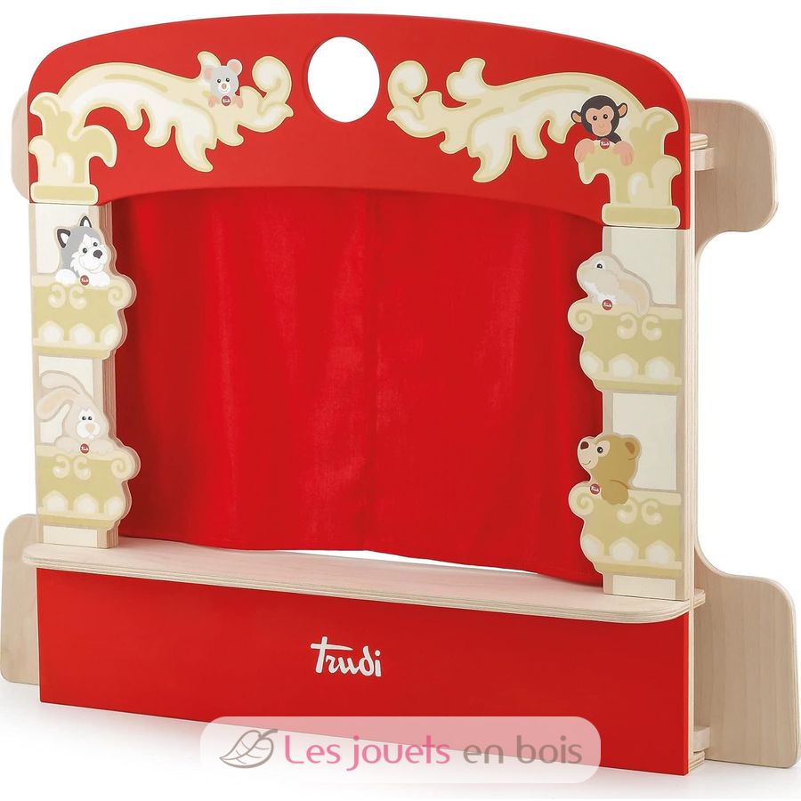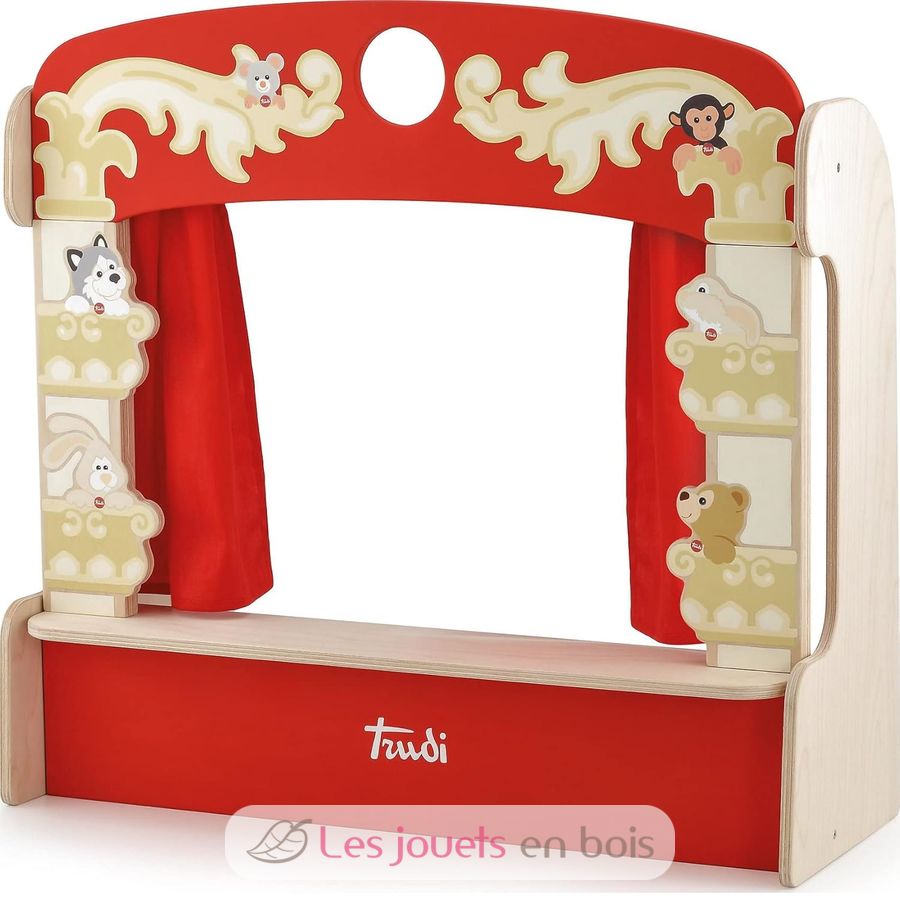 C'est l'heure du spectacle ! Ce théâtre de marionnettes est fabriqué en bois. Il comprend un rideau rouge et peut être facilement fermé et rangé dans un petit espace une fois le spectacle terminé.