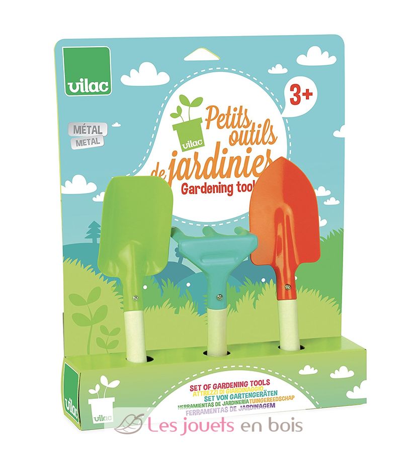 Petits outils de jardinier, un set de jardinage pour enfant de la marque Vilac. Référence 3803.