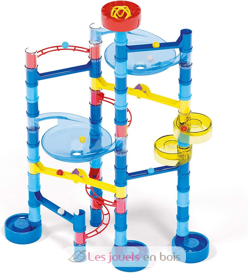 Toboggans, ponts, colonnes et spirales s'emboitent facilement en combinaisons infinies. Créativité et raisonnement sont indispensables pour pouvoir construire de belles pistes mais surtout qui fonctionnent !