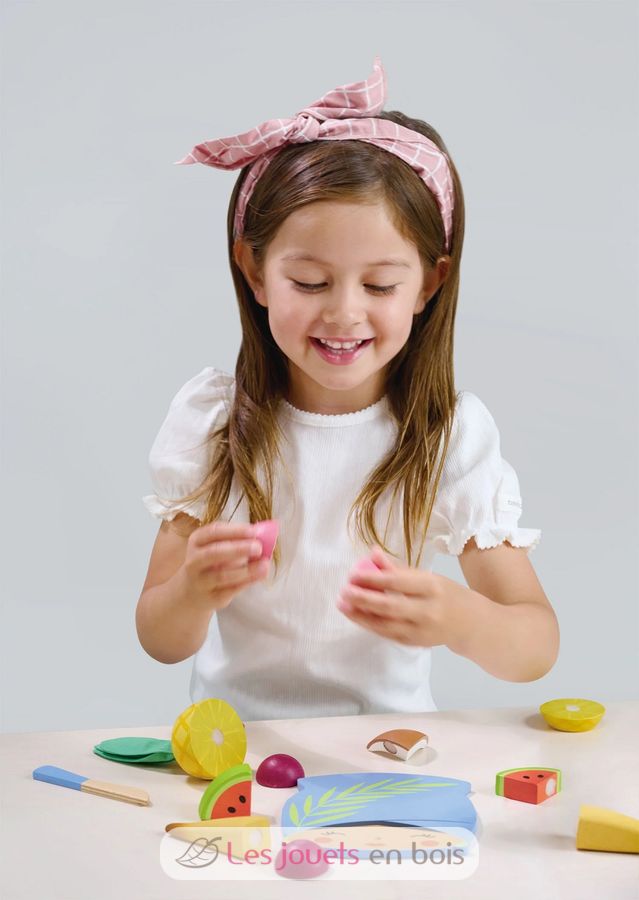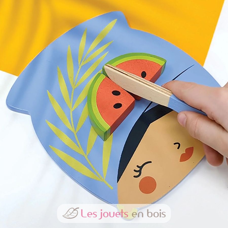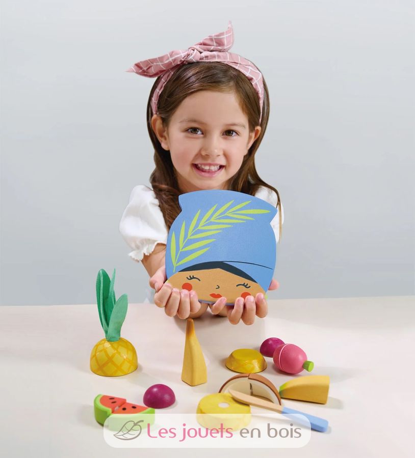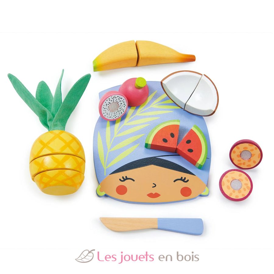 Planche à découper Fruits tropicaux, un jeu d'imitation pour jouer à la cuisine ou à la dinette, de la marque Tender Leaf Toys.