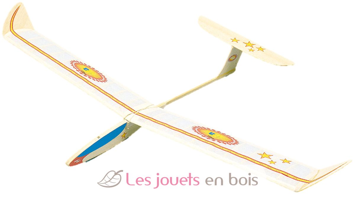 Ce planeur Star est entièrement fabriqué en bois (balsa et obechi) et couvert en papier japon. Le kit comprend une notice détaillée et tous les éléments nécessaires pour la construction du modèle (colle fournie). Longueur : 74 cm. Envergure 114 cm.