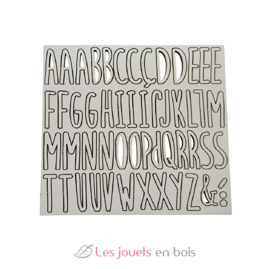 Le kit comprend : 1 plaque en bois avec adhésif double face ; 1 planche de lettres en bois autocollantes. Dimensions : 8,5 x 19 cm.