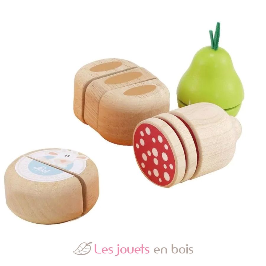 Planchette apéritive avec fromages et saucisson pour faire comme les grands ! Idéal pour compléter une cuisine ou un ensemble de dinette, dès 2 ans.