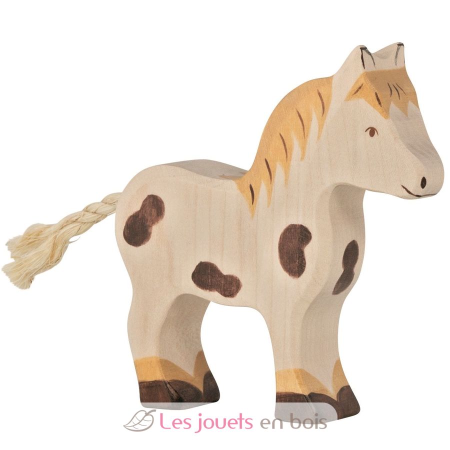 Poney pie, 11,5 x 2,8 x 12 cm, figurine en bois Holztiger, réf 80044.