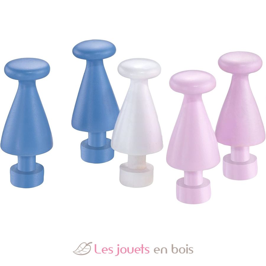 Vous pouvez choisir parmi les 3 couleurs de crochets ceux que vous souhaitez insérer (blanc, rose et/ou bleu), puis les déplacer dans les rainures et les positionner à votre guise.