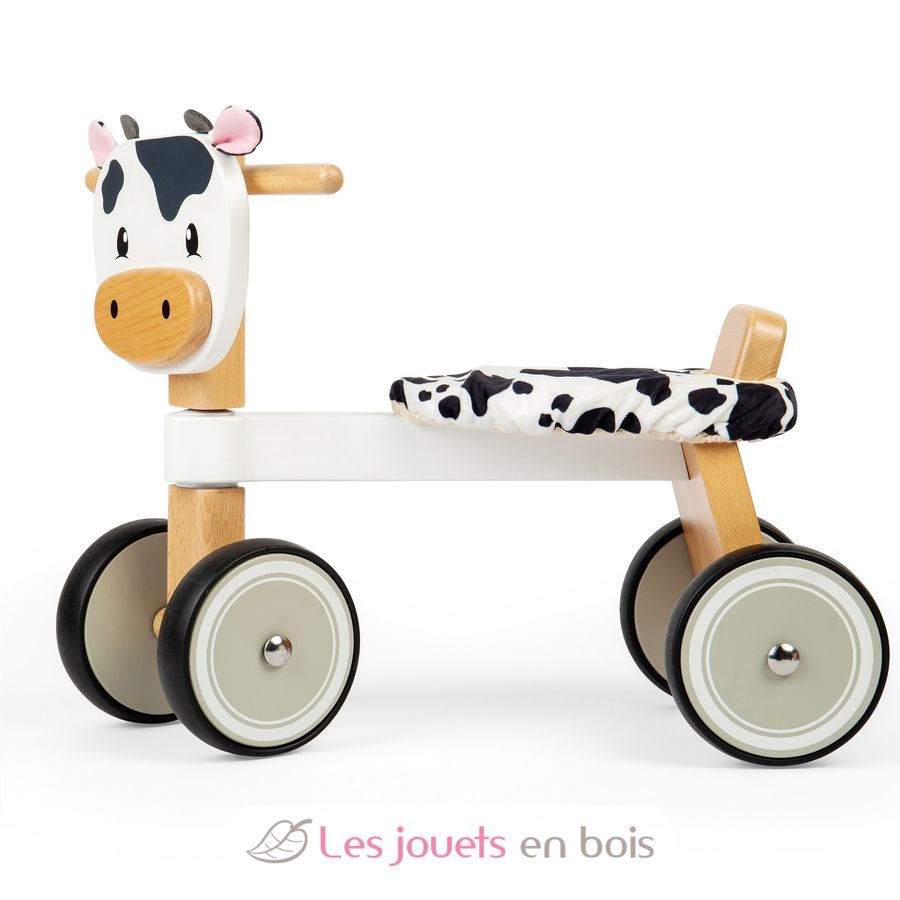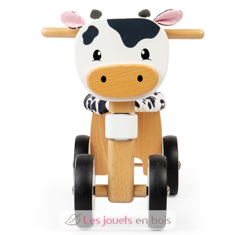 Porteur en bois Vache, un jouet en bois premier âge de la marque Bigjigs Toys.