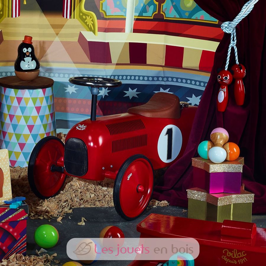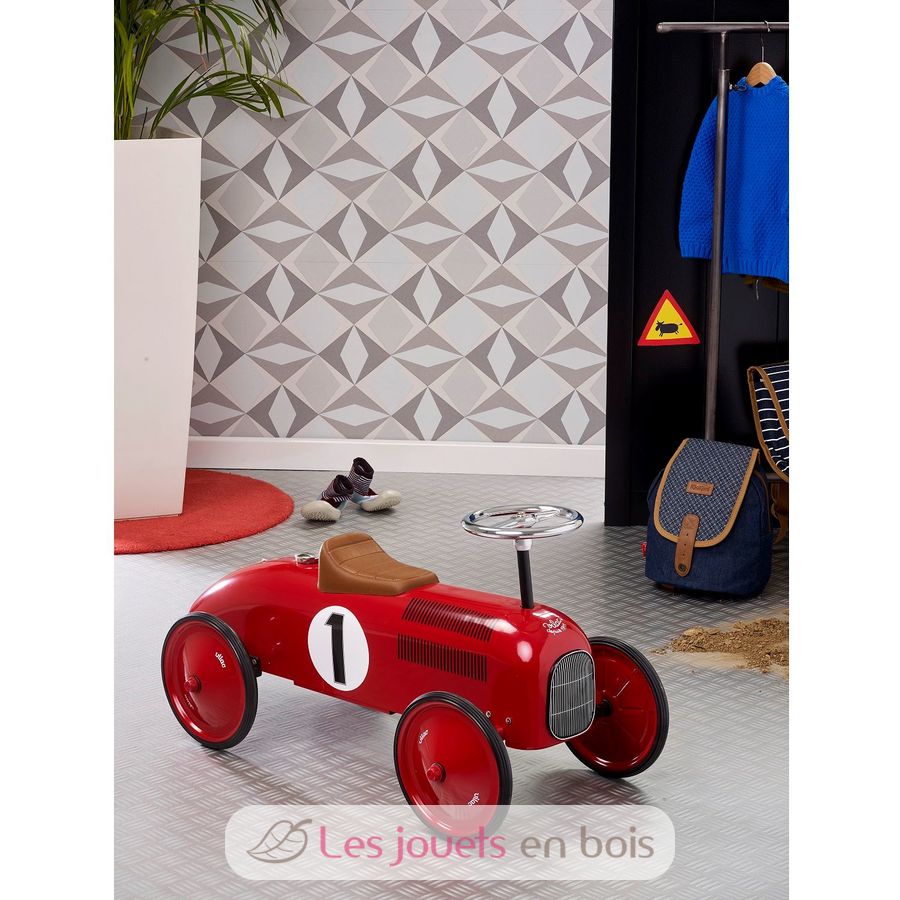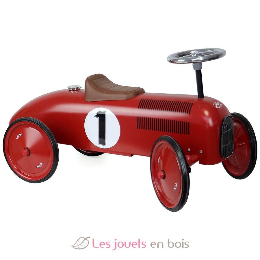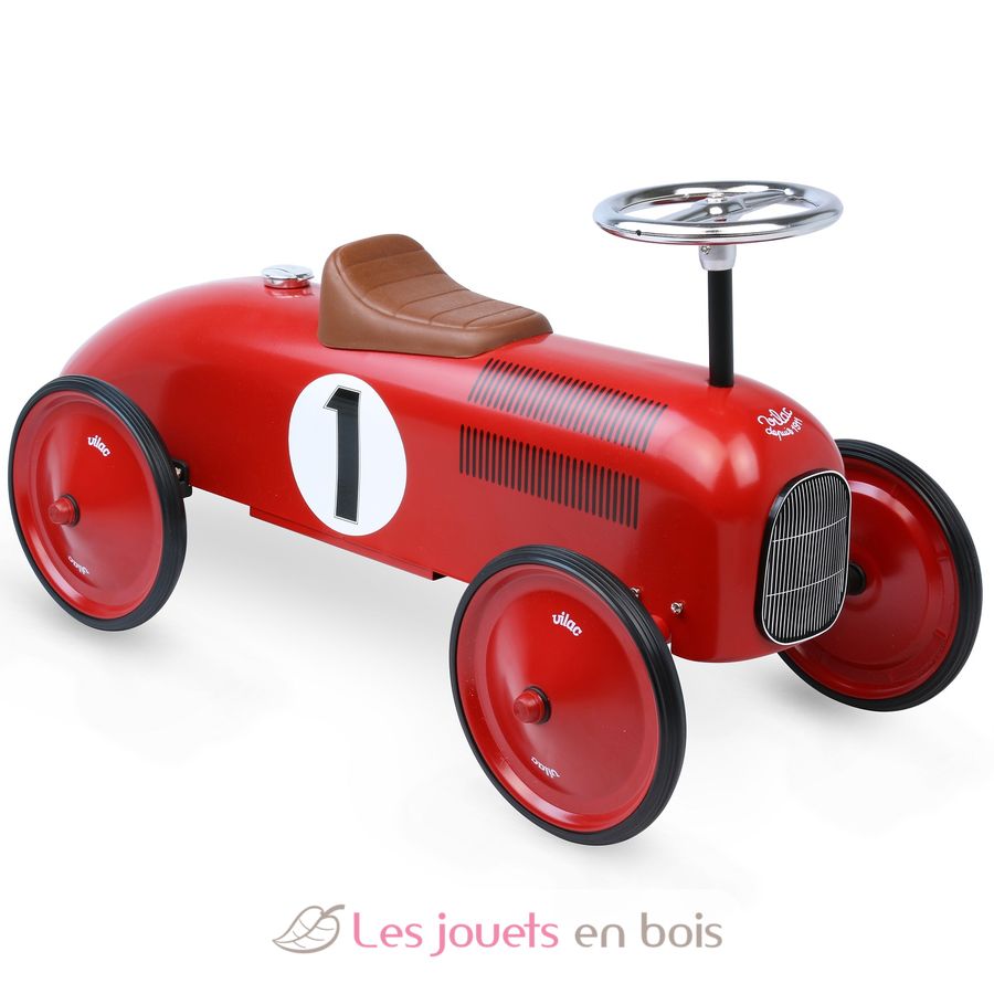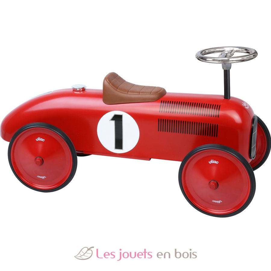 Porteur voiture de course en métal. Couleur Rouge. Dimensions : L = 72 cm. Ce porteur dont la hauteur de l'assise est à 28 cm est idéal à partir de 18 mois. Un porteur de la marque Vilac. Ref.1049.