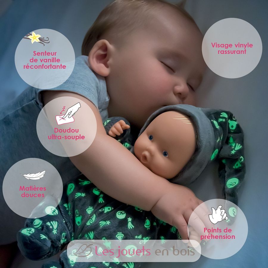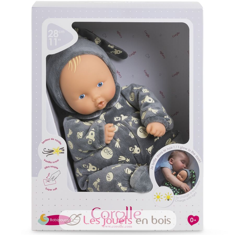 Poupon Babipouce Brille dans la nuit, le doudou poupon iconique de 28 cm, de la collection Mon Doudou Corolle.