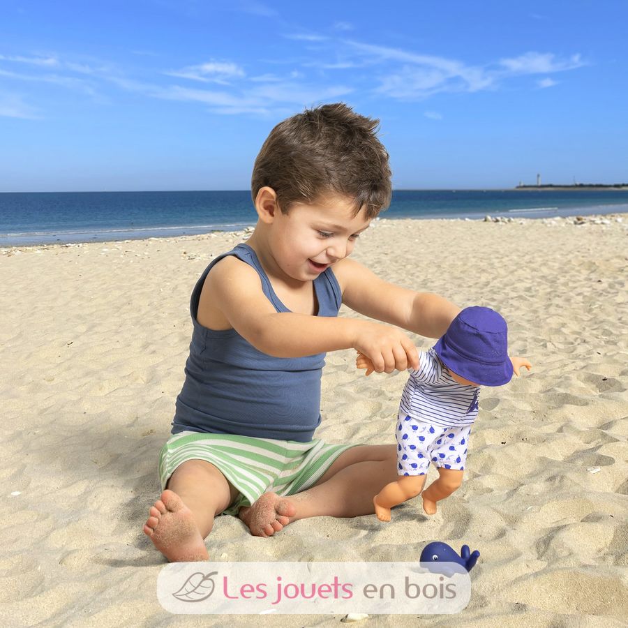 Son petit plus : l’attache cousue dans son dos permet de le suspendre pour le faire sécher après le bain et/ou les jeux d’eau. Une fois sec, il devient un petit compagnon tendre à pouponner, dès 18 mois.