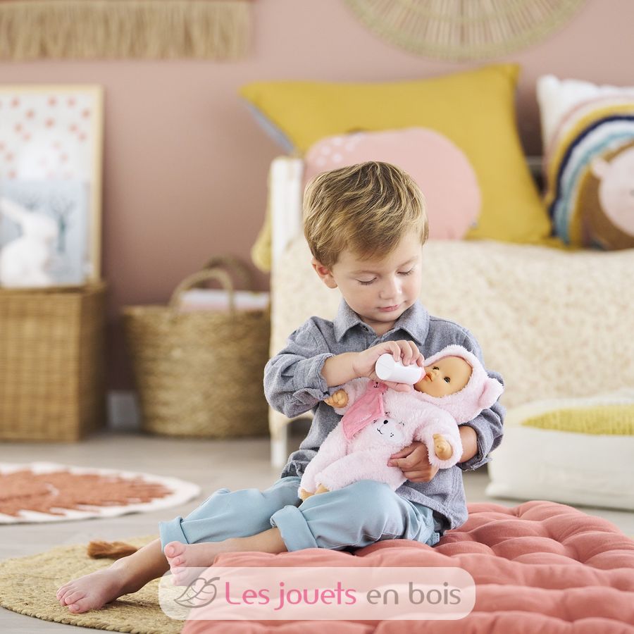 Cette poupée est accompagnée de deux accessoires : son doudou et son biberon pour bien s'occuper de lui. Ce poupon est idéal pour pouponner pour la première fois, dès 18 mois.