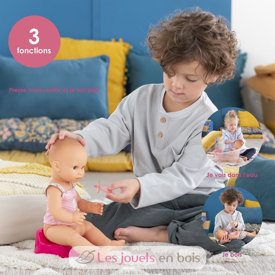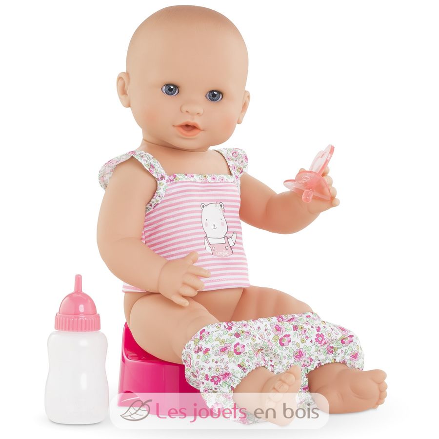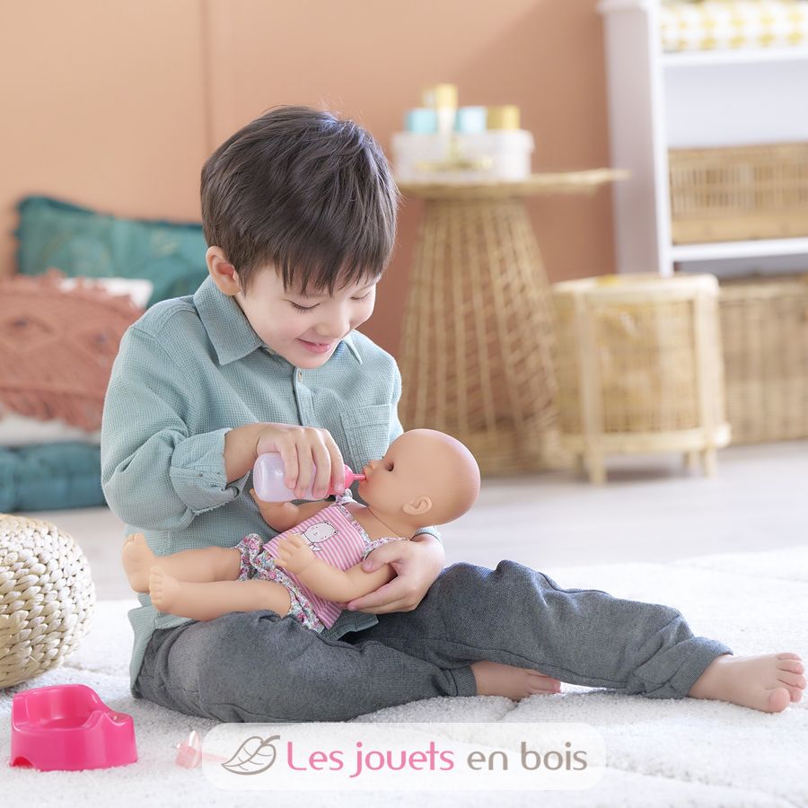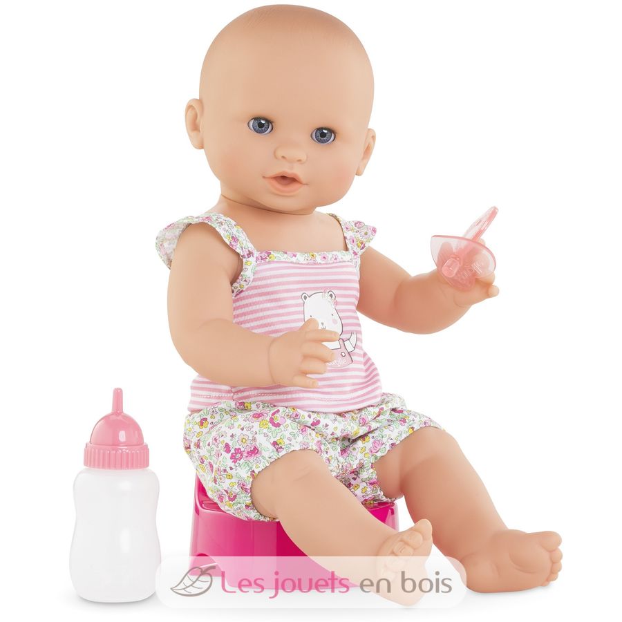 Avec ses 3 accessoires inclus (son pot, son biberon et sa tétine), ce grand poupon sexué fille de 36 cm :