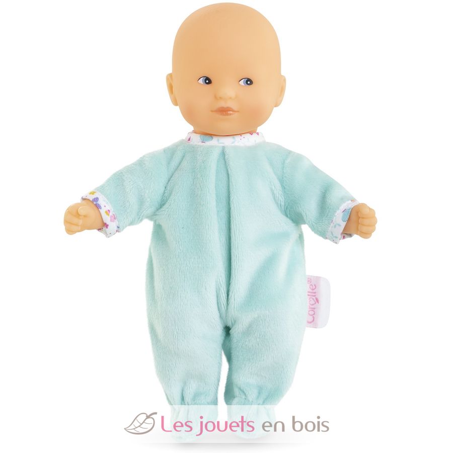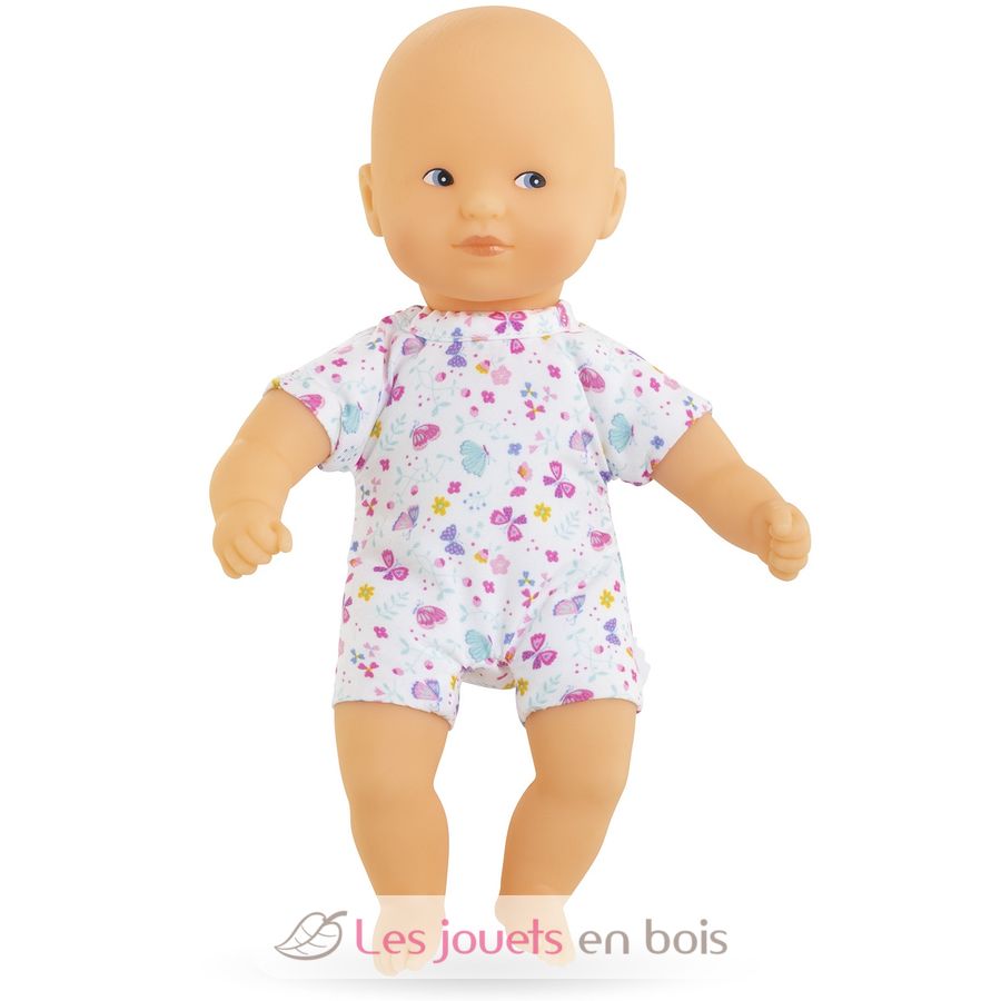 Offrez à votre enfant sa première poupée Corolle. Ce coffret est composé d'un petit poupon de 20 cm léger et facile à emmener partout, d'un pyjama et d'une turbulette. La turbulette et le pyjama sont équipés de bandes auto-agrippantes pour faciliter l'habillage et le déshabillage. Le mini poupon a un visage, des bras et des jambes en vinyle, à la délicate senteur de vanille, et des yeux bleus peints. La toile de corps de ce poupon a des motifs de papillons et de fleurs.