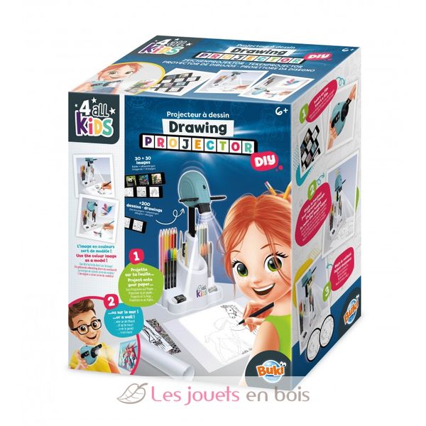Inclus : 1 projecteur, 30 images et 200 motifs à reproduire pour créer ses propres univers, 12 crayons aquarellables, 8 feutres, un feutre fin noir, un crayon de papier, une gomme, un taille-crayon, un pinceau, 10 feuilles A5, 10 feuilles A4, 5 marque-pages, 1 rouleau poster de 5 mètres et 1 notice illustrée.