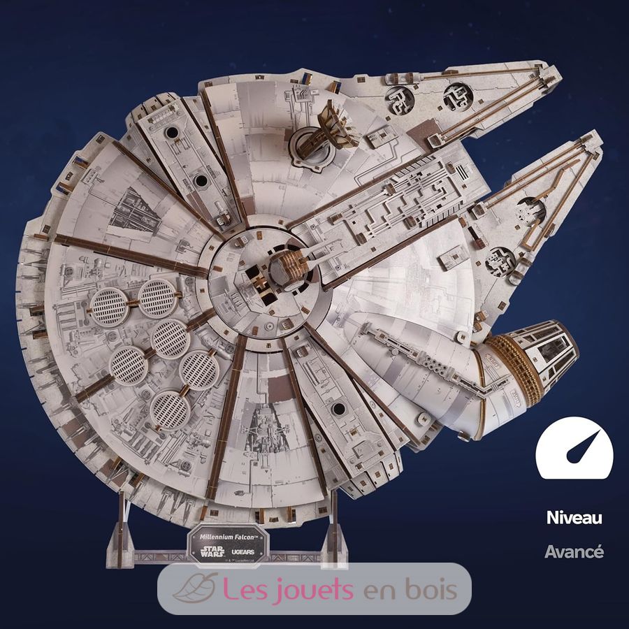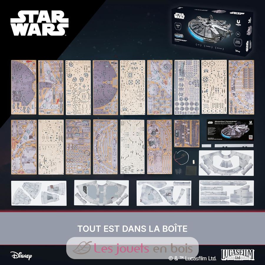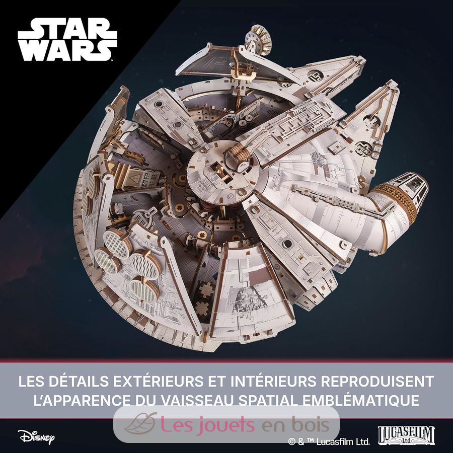 À l'échelle 1:75, cet incroyable modèle réduit du vaisseau piloté par les adorables contrebandiers Han Solo et Chewbacca est le plus grand et le plus détaillé jamais commercialisé par Ugears. Combattant clé des batailles les plus décisives contre l'Empire galactique, le Faucon Millenium est passé entre les mains d'une série de criminels avant d'être finalement volé et piloté par Rey Skywalker dans Le Réveil de la Force (2015), puis récupéré par Han et Chewie.