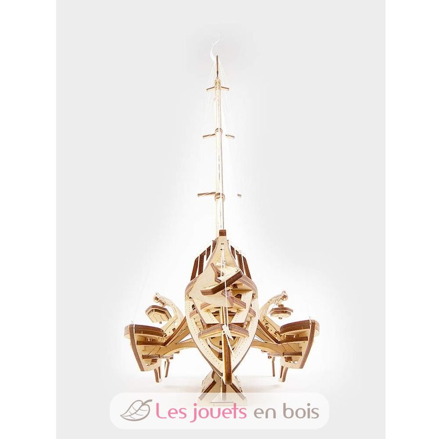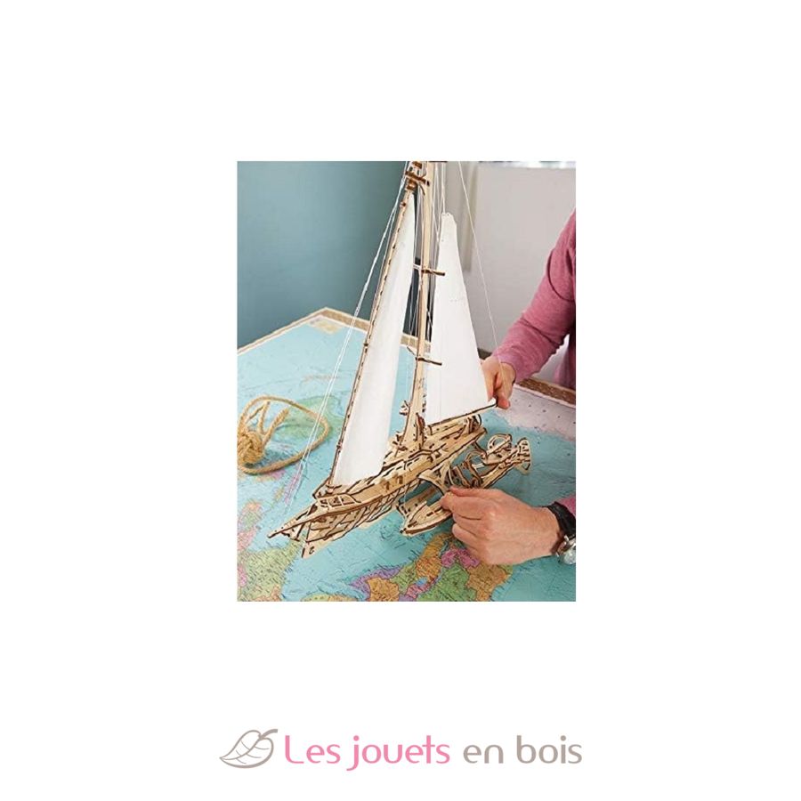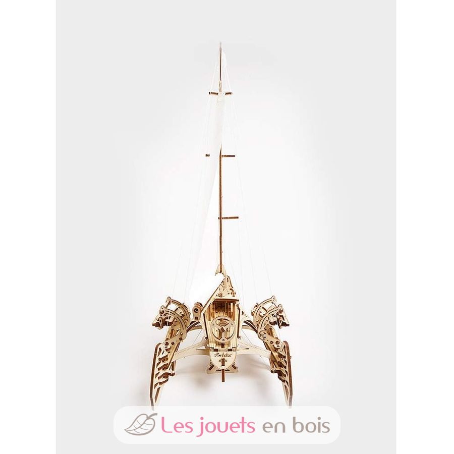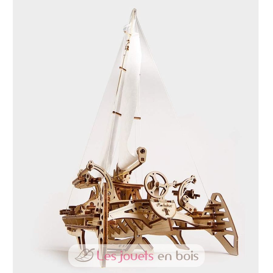 Trimaran Mérihobus, un puzzle 3D mécanique en bois, à assembler soi-même (sans colle).