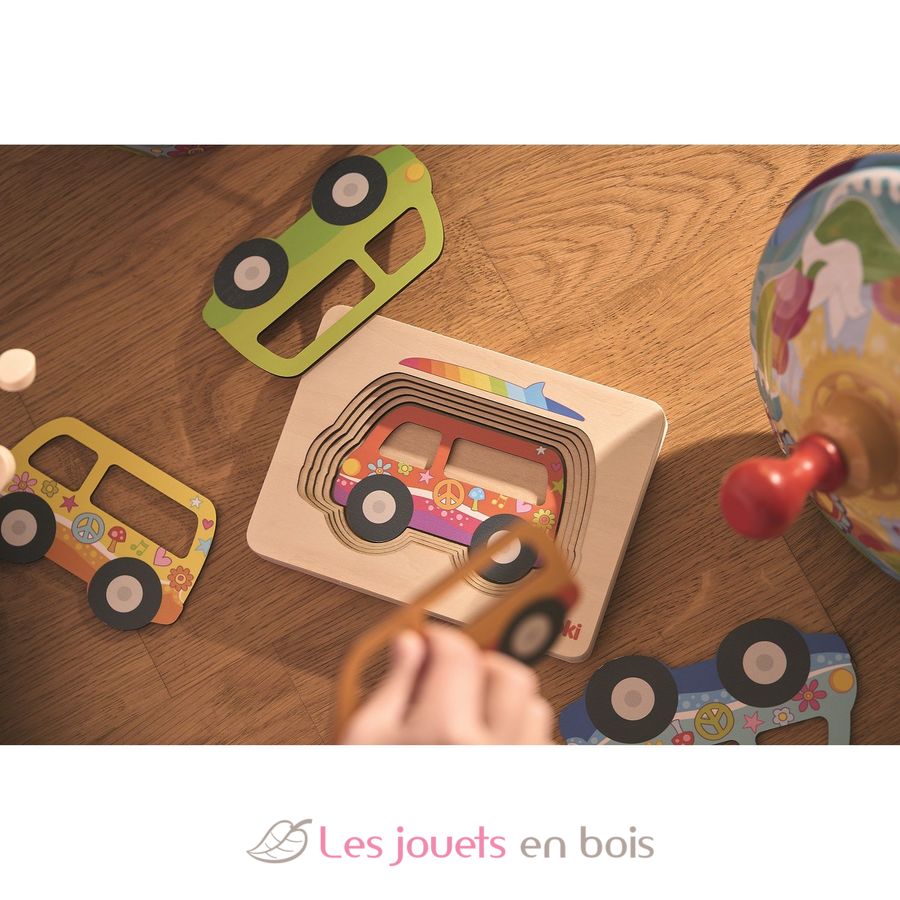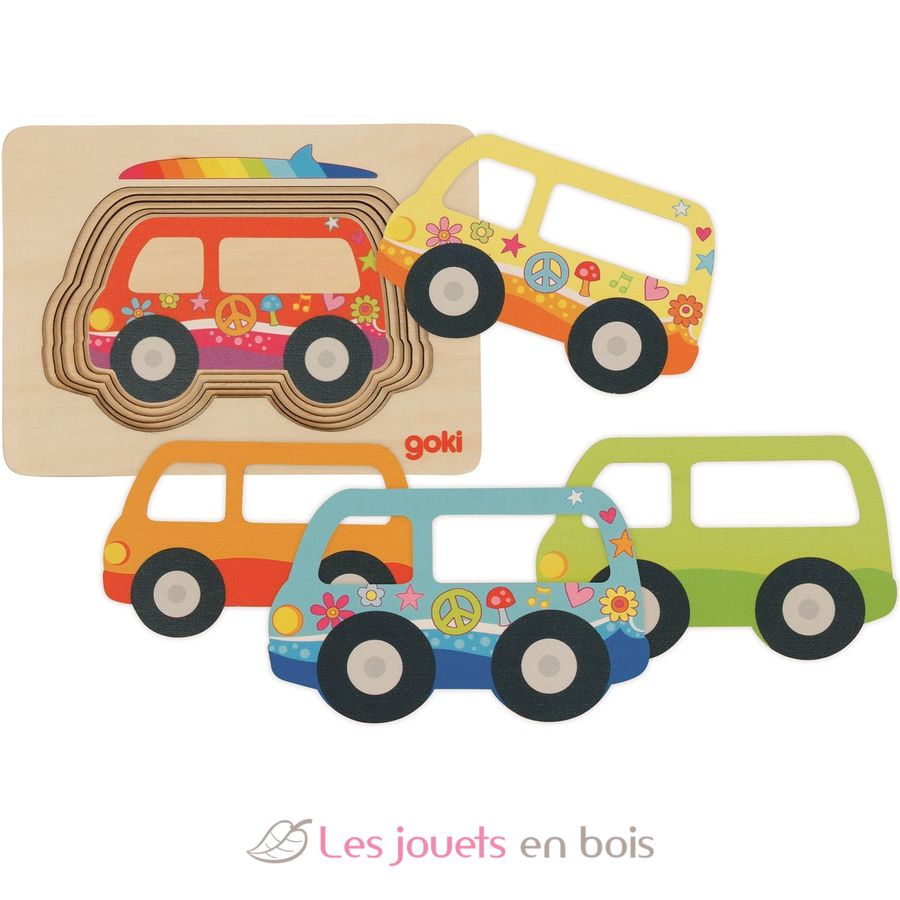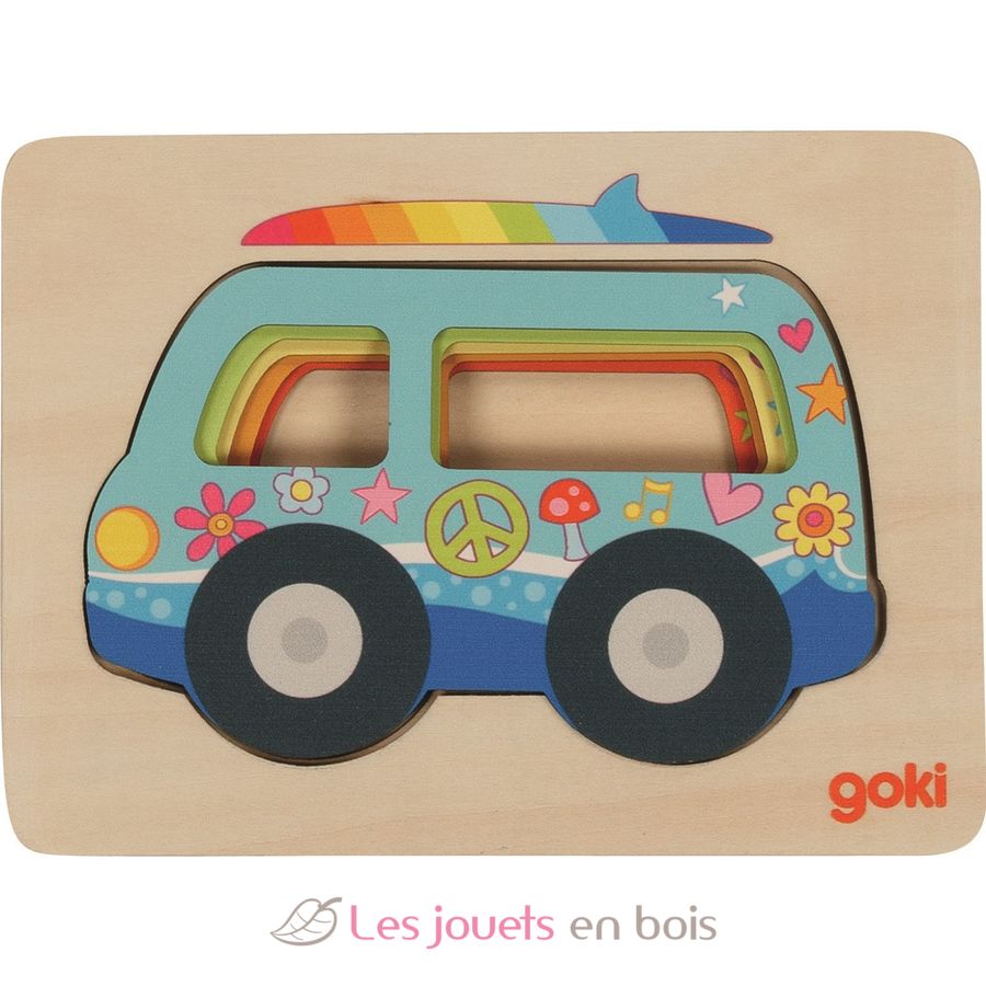 Puzzle à couches Van, un puzzle en bois premier âge de la marque Goki. Référence 57304.