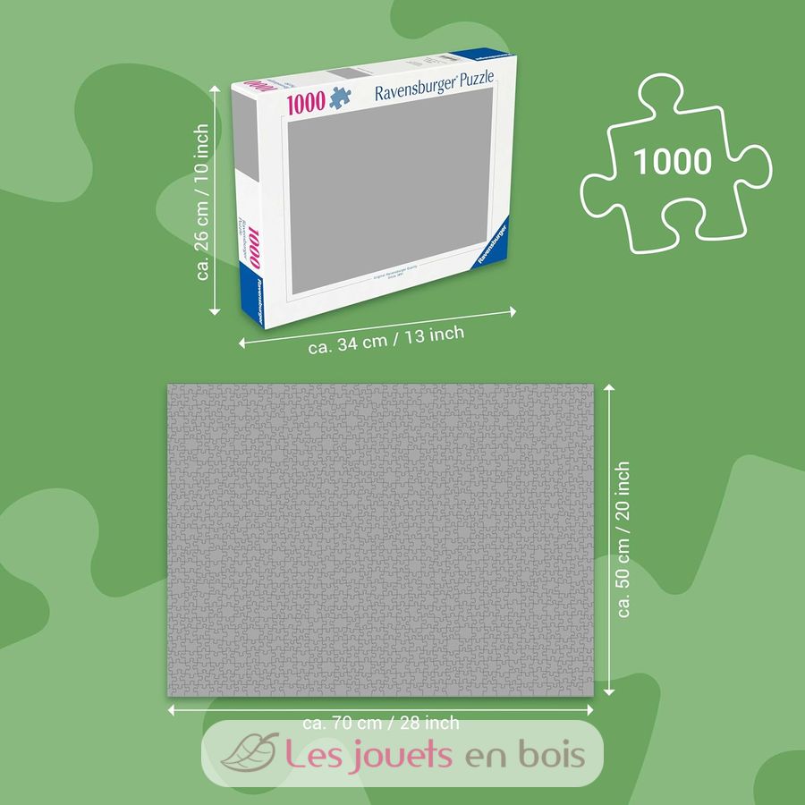 Pour les puzzleurs entraînés, le format 1000 pièces est idéal pour profiter de l'activité du puzzle, propice à la détente et à la relaxation. Chaque pièce a une forme unique et permet un assemblage parfait de l'image choisie. Dimensions du puzzle : 70 x 50 x 0,2 cm.
