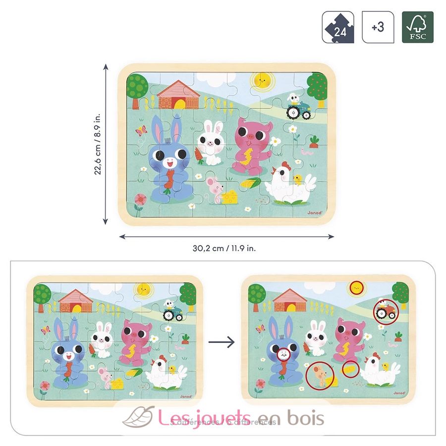 Un puzzle en bois de 24 pièces, avec un jeu des différences pour favoriser l'observation, dès 3 ans.