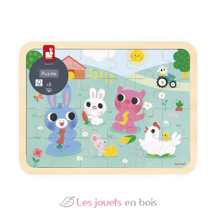 Puzzle en bois A la ferme 24 pièces de la marque Janod. Référence J07126.