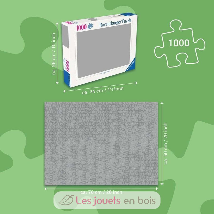 Pour les puzzleurs entraînés, le format 1000 pièces est idéal pour profiter de l'activité du puzzle, propice à la détente et à la relaxation. Chaque pièce a une forme unique et permet un assemblage parfait de l'image choisie. Dimensions du puzzle : 70 x 50 x 0,2 cm.
