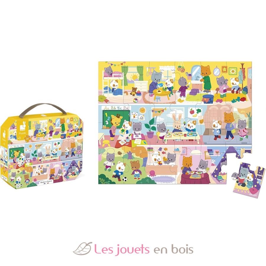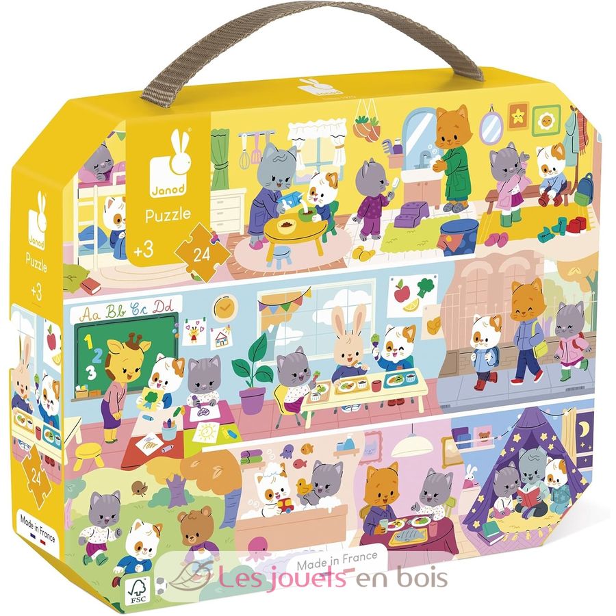 Avec ce puzzle carton, votre enfant apprendra à se repérer dans le temps et à identifier les rituels du quotidien, tout en développant sa concentration et sa dextérité. Dimension du puzzle : 50 x 40 x 0,2 cm.