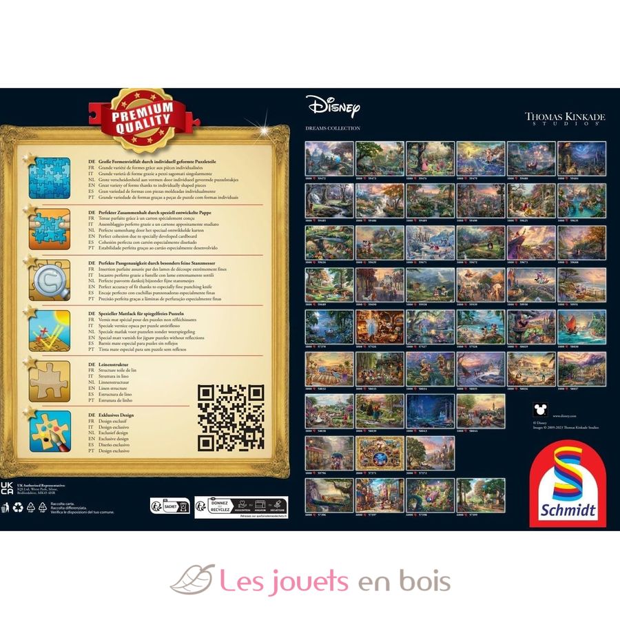 Les puzzles Schmidt Spiele sont des puzzles haut de gamme, fabriqués en Europe. Leur qualité et leur finition garantissent un ajustement parfait des pièces et un plaisir de jeu qui dure longtemps.
