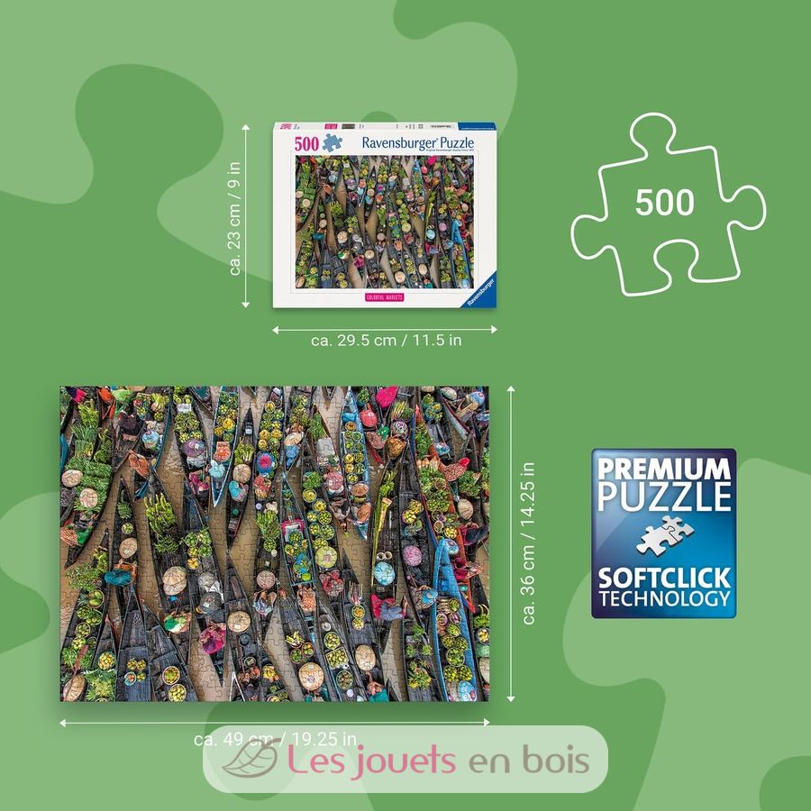 Puzzle Marché flottant en Indonésie 500 Pcs de la marque Ravensburger.