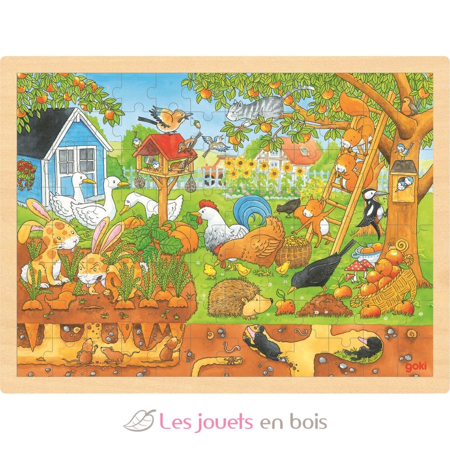 Puzzle Notre jardin, un grand puzzle de 96 pièces en bois de la marque Goki. Référence 57743.