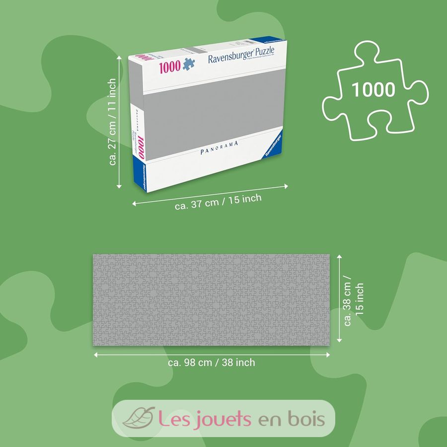 Ce coffret contient un puzzle en carton de 1000 pièces. Pour les puzzleurs entraînés, le format 1000 pièces est idéal pour profiter de l'activité du puzzle, propice à la détente et à la relaxation. Chaque pièce a une forme unique et permet un assemblage parfait de l'image choisie. Dimensions du puzzle : 98 x 37,5 x 0,2 cm.