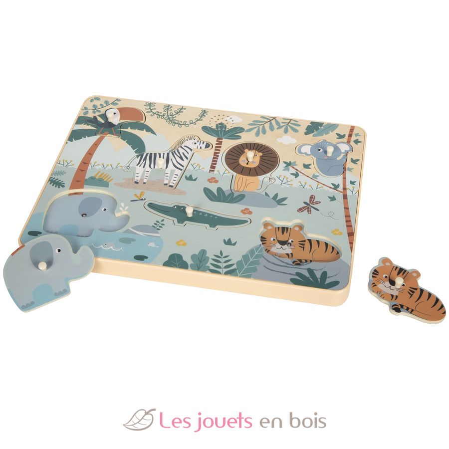 Puzzle sonore Safari, un puzzle en bois premier âge de la marque Small foot.