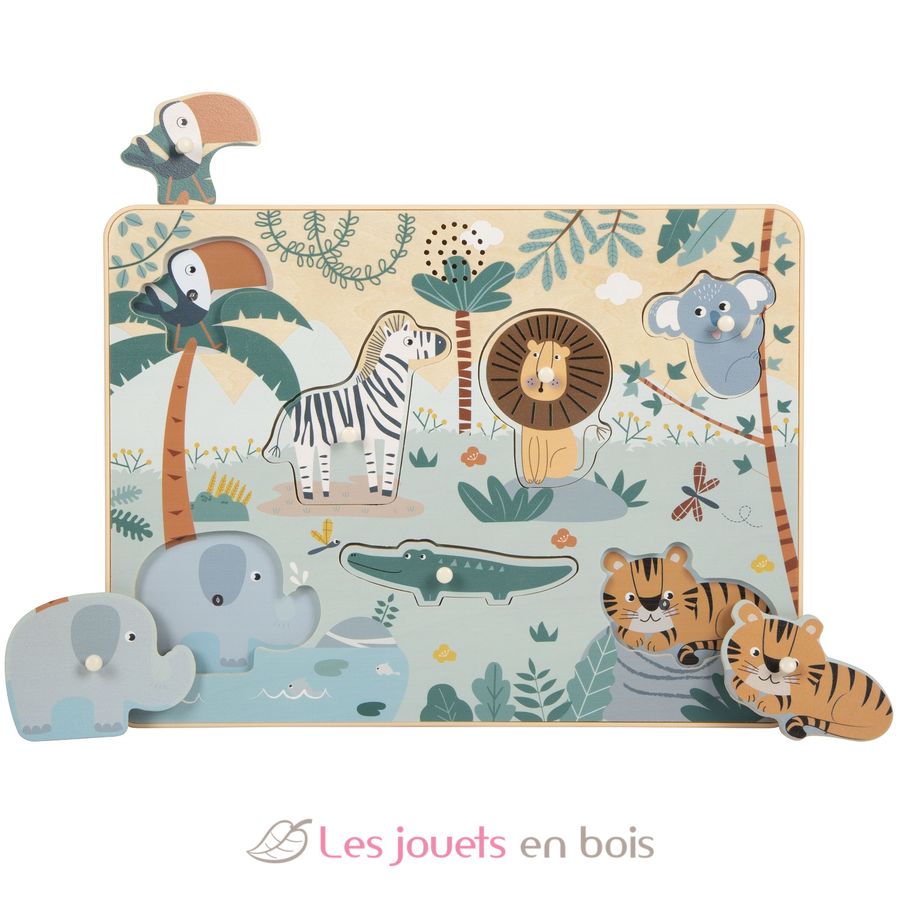 Ce puzzle à encastrer joliment illustré, fabriqué en bois certifié FSC et plastique, fait découvrir le monde passionnant du safari aux enfants.