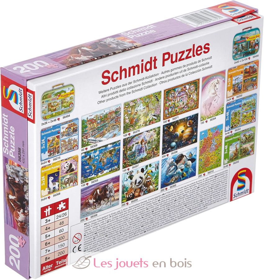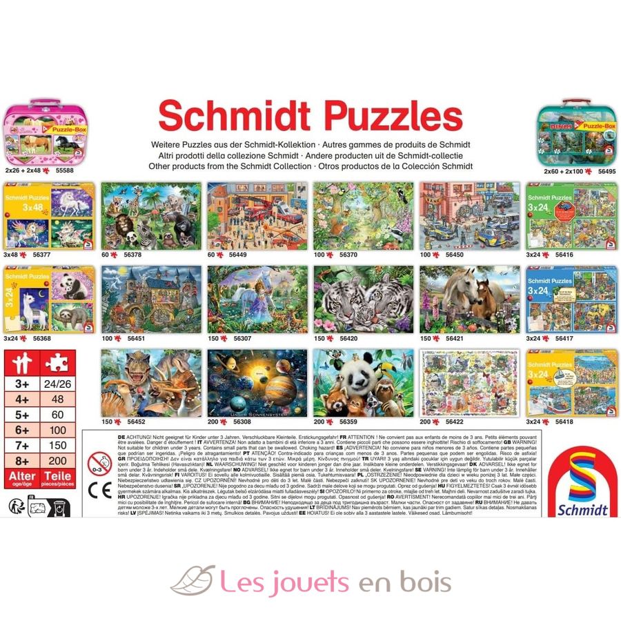 Les puzzles Schmidt Spiele sont des puzzles haut de gamme, fabriqués en Europe. Leur qualité et leur finition garantissent un ajustement parfait des pièces et un plaisir de jeu qui dure longtemps.