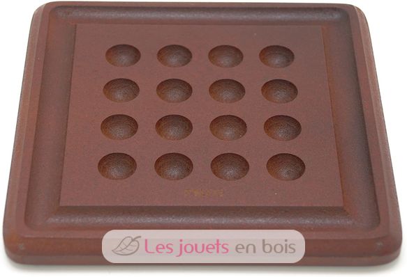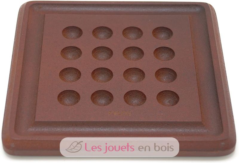 Contenu : 1 plateau, 30 billes en bois, 1 sac en tissu, règle du jeu. 2 joueurs, à partir de 8 ans. Durée : 15 min.