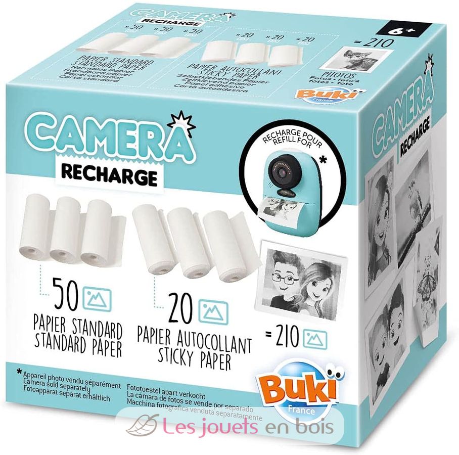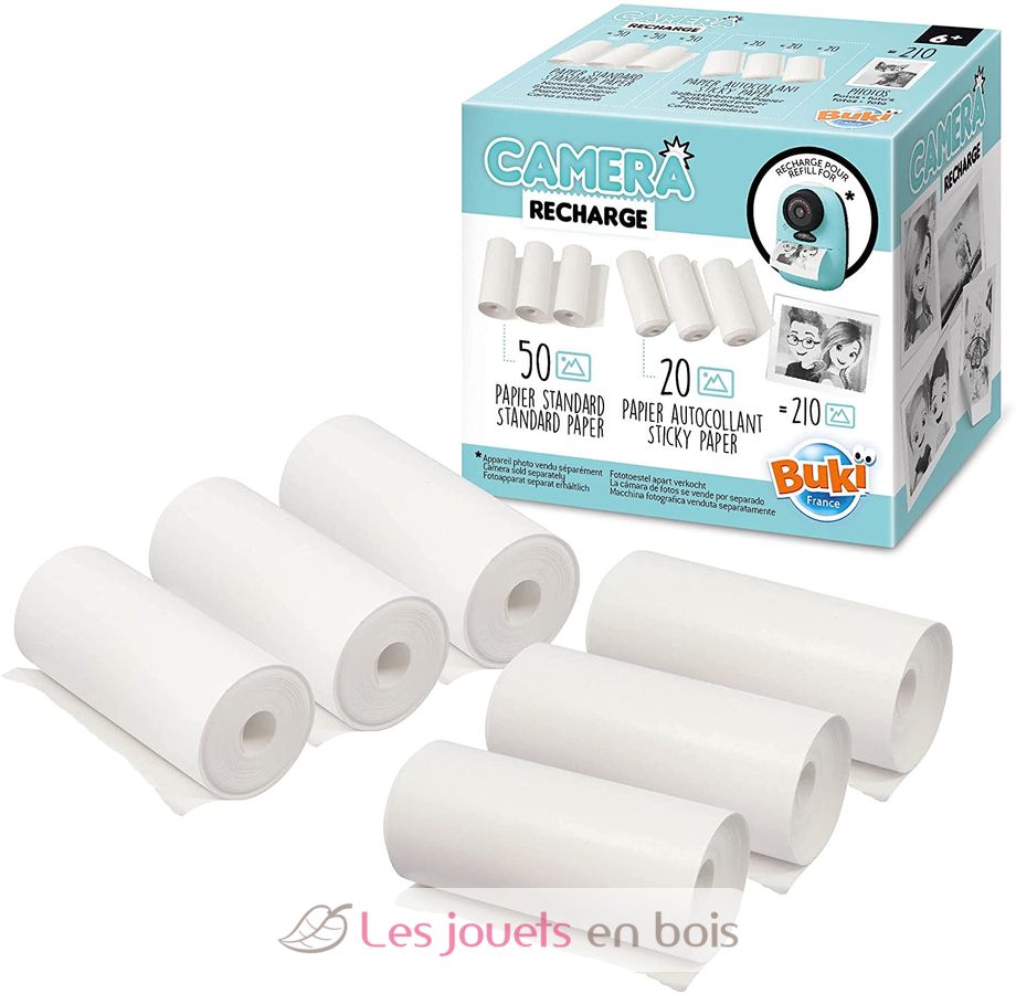 Ce set se compose de 3 rouleaux de papier standard et 3 rouleaux de papier autocollants pour imprimer des photos avec l’appareil photo imprimante de la marque Buki.