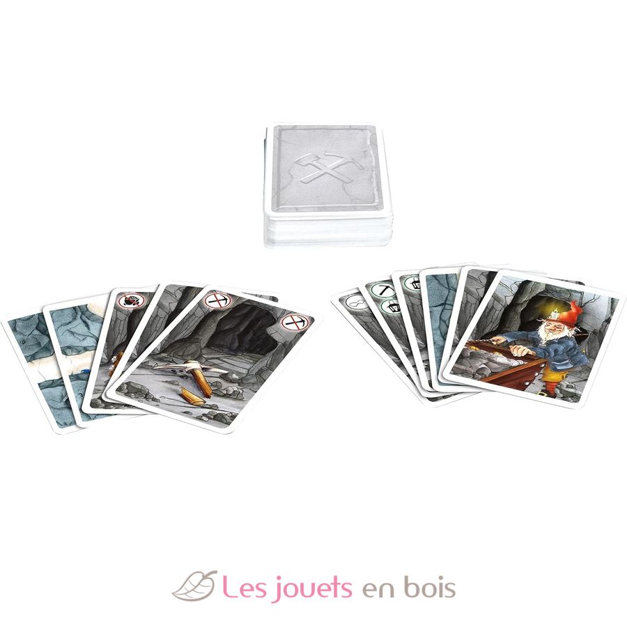 A la fin d'une manche, si l'or a été trouvé, les chercheurs le partagent entre eux, sinon, les saboteurs le récupèrent. Après 3 manches, le plus riche a gagné.- Matières : Carton & Papier