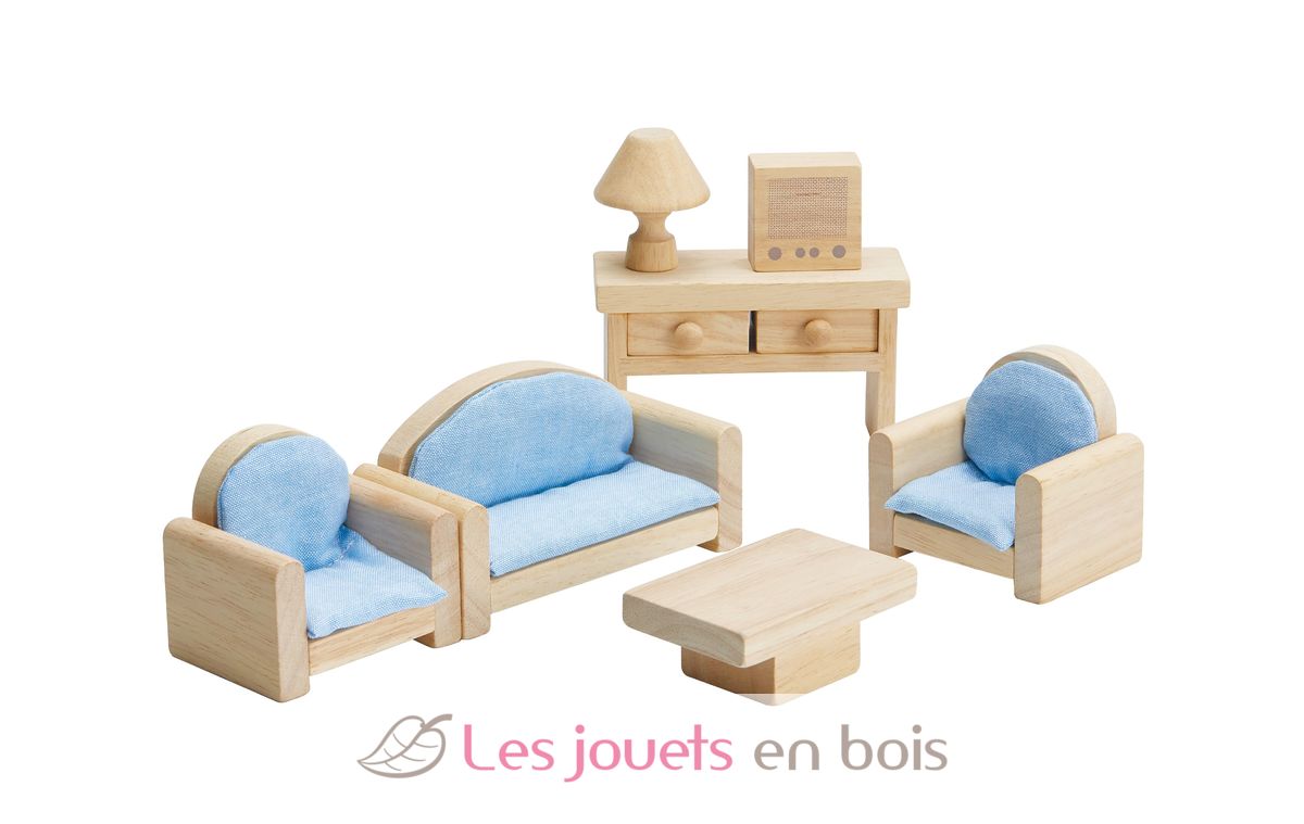 Mobilier en bois pour maison de poupée de la marque Plan Toys.