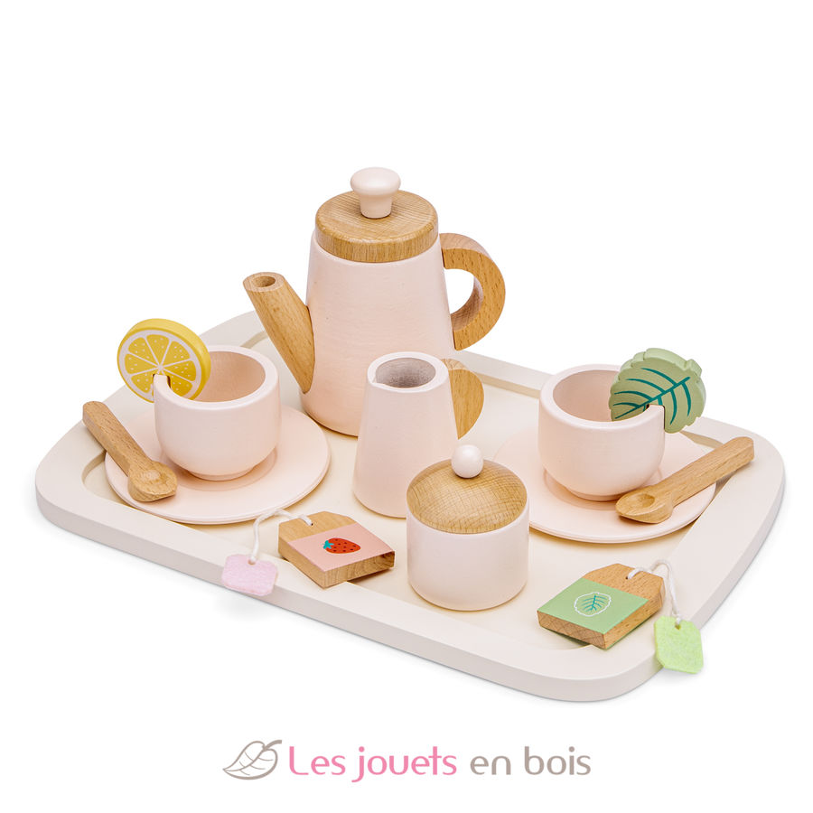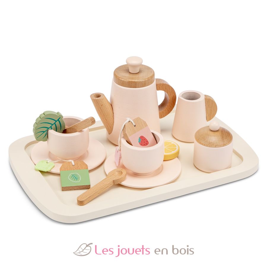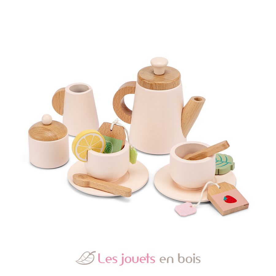 Service à thé en bois, une dînette en bois de la marque Woet by New Classic Toys.